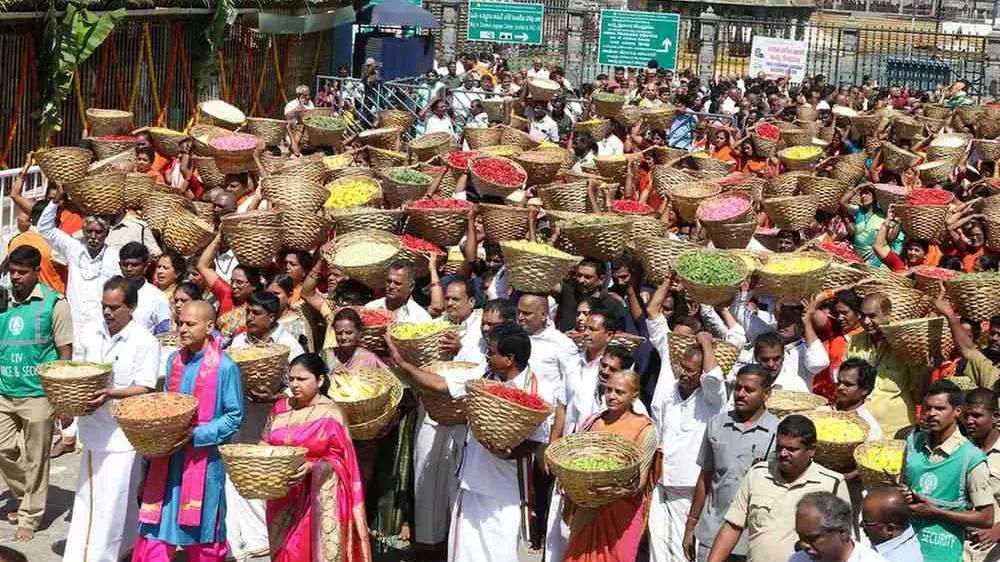 స్వామి వారి పూజకు ఉపయోగించే పుష్పాల ఊరేగింపు గురువారం ఉదయం తిరుమలలో జరిగింది.