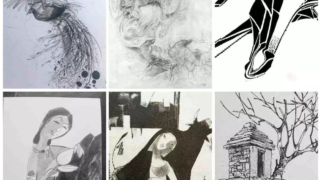హైదరాబాద్ ఐకాన్ ఆర్ట్ గేలరీలో 2025 నవంబర్ 7 నుంచి 16 దాకా వీళ్ళ ఆర్ట్ ఎగ్జిబిషన్ జరుగుతుంది. దానికి BETWEEN BLACK & WHITE అని పేరు పెట్టారు. బావుంది కదా. వీళ్ళ బొమ్మలు ఇంకా బావుంటాయి.