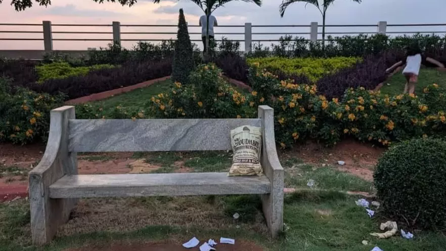 అలా బెంచీ చుట్టూ వెదజల్లి వెళ్ళిపోయి ఉండొచ్చు .