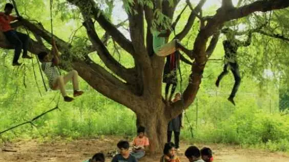 ఆ స్కూలు లో ఉపాధ్యాయులంటూ ప్రత్యేకంగా ఎవరూ లేరు. అక్కడి విద్యార్ధులకు నియమిత తరగతులూ లేవు. 10 సంవత్సరాల నుండి 20 సంవత్సరాల వయసు గల ఆ విద్యార్ధులందరూ ఏ చెట్టుకిందనో, ఏ పూల పొదరిళ్ల పక్కనో కూర్చుని చదువుకుంటూ వుంటారు. పరస్పరం చర్చించుకుంటూ వుంటారు. దాదాపు 80 మంది విద్యార్ధు లు ఒక నూతన పద్దతిలో విద్యార్జన కొనసాగిస్తున్న వనం వైనం ఇది.
