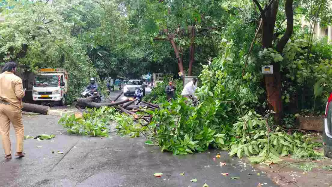 శ్రీకృష్ణాపురంలో ప్రహరీపై కూలిన చెట్టు