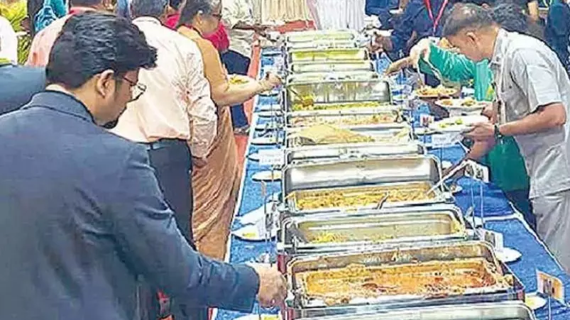 నాన్వెజ్ విభాగం ప్రతినిధులతో కిటకిటలాడింది. వెజిటేరియన్ ఎంపికల్లో థాయ్ బాసిల్ నూడుల్స్, కొత్తిమీర గుత్తివంకాయ, గార్డెన్ వెజిటబుల్స్, మామా రోసా సాస్తో పాస్తా, గ్రిల్డ్ పన్నీర్ ఉన్నాయి.