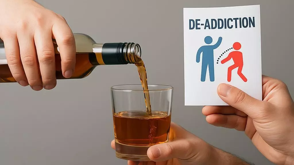 ఒక చేత్తో మద్యం గ్లాస్, మరో చేత్తో డీ-అడిక్షన్ బ్రోచర్