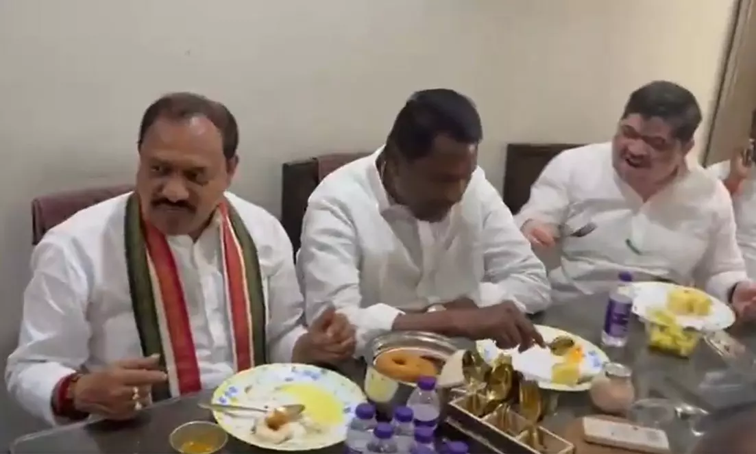 కొందరు సీనియర్ నేతలతో కలిసి బొమ్మ, పొన్నం, అడ్లూరి బ్రేక్ ఫాస్ట్ చేశారు. తనమాటలకు లక్ష్మణ్ బాధపడినందుకు తను క్షమాపణలు చెబుతున్నట్లు మరోసారి పొన్నం ప్రకటించారు. సామాజికన్యాయానికి కాంగ్రెస్ పార్టీయే ఛాంపియన్ అని అన్నారు. పార్టీ సంక్షేమం, బలపేతం తప్ప తనకు, అడ్లూరికి మరో ఉద్దేశ్యంలేదన్నారు. తాను అడ్లూరిని ఏమీ అనకపోయినా మీడియాలో వచ్చిన దానిప్రకారం అడ్లూరి బాధపడ్డారు కాబట్టి తాను క్షమాపణలు చెప్పినట్లు పొన్నం తెలిపారు.