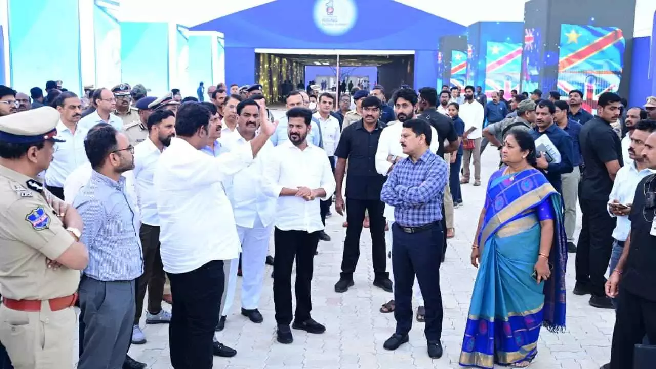 గ్లోబల్ సమ్మిట్ ఏర్పాట్లను పరిశీలించిన సీఎం రేవంత్ రెడ్డి.