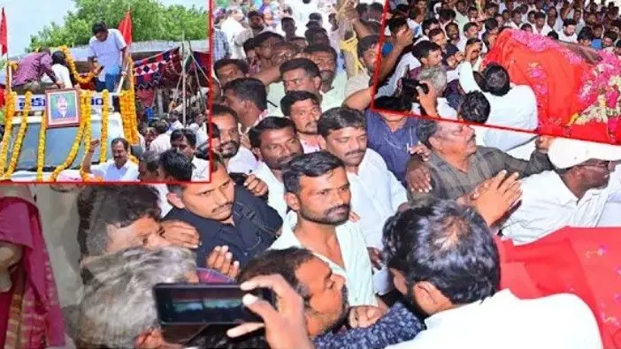 ఎర్రజెండాల రెపరెపలతో వెలిశాల గ్రామం ఎరుపెక్కింది. విప్లవగీతాలతో గ్రామం మొత్తం మారుమోగిపోయింది. ఇదంతా ఏమిటో అనుకుంటున్నారా. మావోయిస్టు అగ్రనేతల్లో ఒకడైన గాజర్ల రవి(Gajarla Ravi) అంత్యక్రియల సందర్భంగా వెలిశాల గ్రామంలో కనబడిన దృశ్యం. జయశంకర్ భూపాలపల్లి జిల్లా టేకుమట్ల మండలంలోని వెలిశాల గ్రామంలో శుక్రవారం సాయంత్రం గాజర్ల రవికి అంత్యక్రియలు జరిగాయి. గాజర్ల మృతదేహాన్ని పోలీసులు కుటుంబసభ్యులకు ఇస్తారా ఇవ్వరా అన్న సందేహలు పెరిగిపోయాయి. బుధవారం ఉదయం రంపచోడవరం అడవుల్లో గ్రేహౌండ్స్ ఎన్ కౌంటర్లో(Grey Hounds) రవితో పాటు సహచర మావోయిస్టు(Maoists Encounter)లు అరుణ, ఝాన్సీ కూడా మరణించిన విషయం తెలిసిందే. బుధవారం సాయంత్రానికే మూడు మృతదేహాలను పోలీసులు రంపచోడవరం ఆసుపత్రికి తీసుకొచ్చారు. అయితే కుటుంబసభ్యుల్లో ఎవరినీ మృతదేహాలను చూడనీయలేదు.