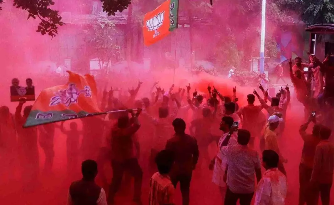 బీఎంసీ ఎన్నికల్లో విజయం సాధించిన తరువాత సంబురాల్లో బీజేపీ శ్రేణులు