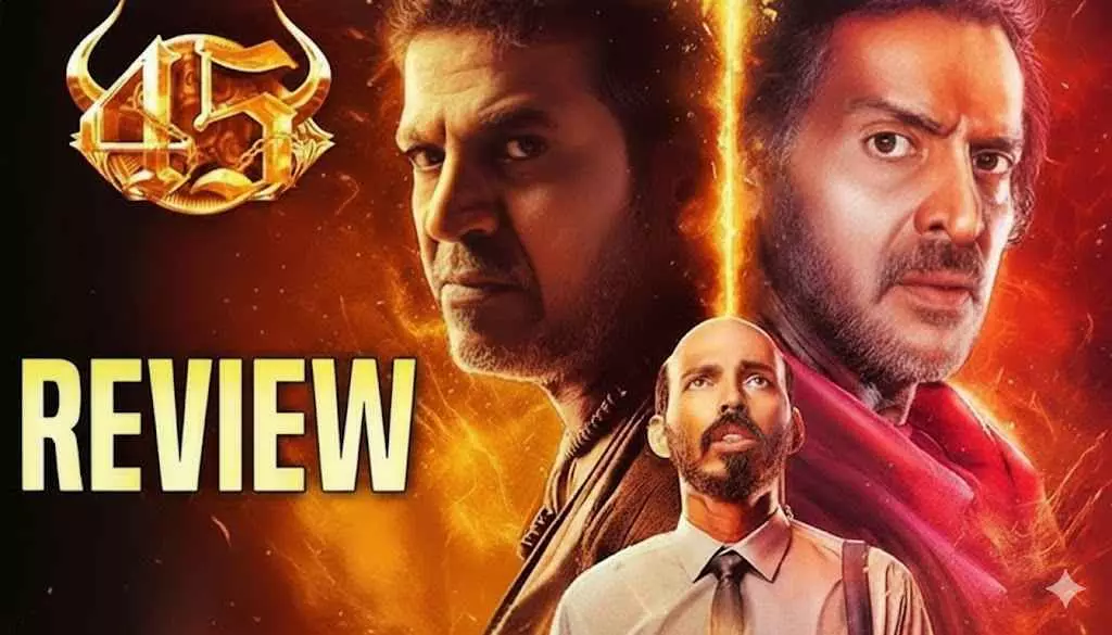 "'45' చిత్రం కేవలం డివోషనల్ ఫాంటసీ జానర్ లో తీసిన కమర్షియల్ సినిమా మాత్రమే కాదు; ఇది మరణంపై సాగే ఒక తాత్విక అన్వేషణ, అయితే ఇంత గ్రాండ్ ఐడియా కూడా కొన్ని తడబాట్లుతో పెద్దగా ఎక్సైటింగ్ గా అనిపించలేకపోయింది.