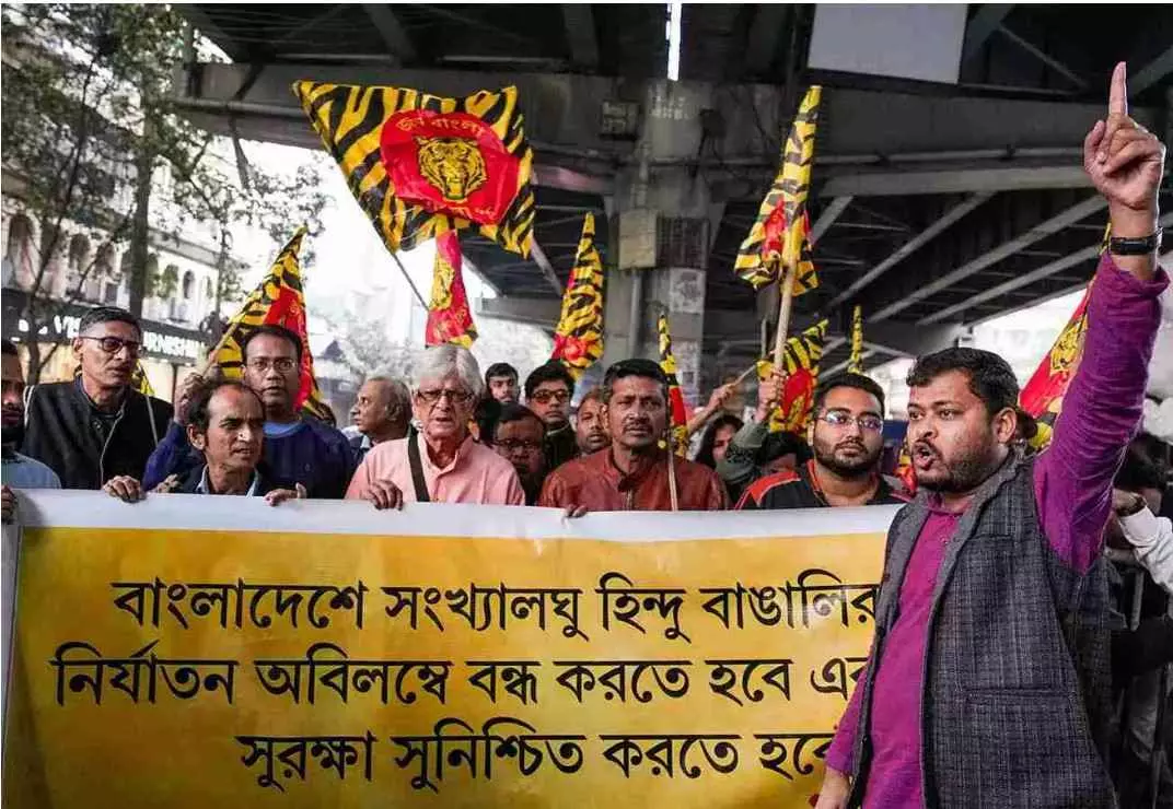 మైనారిటీలపై జరుగుతున్న దాడులను నిరసిస్తూ ప్రదర్శన చేస్తున్న హిందువులు