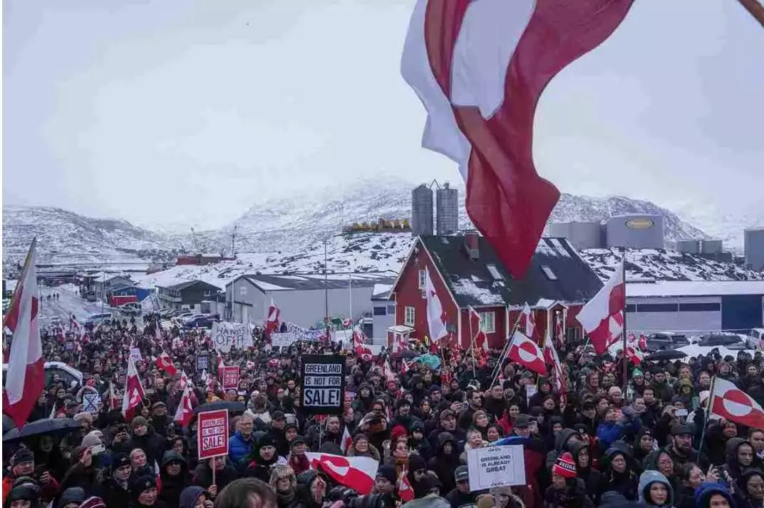 అమెరికాలో గ్రీన్ ల్యాండ్ కలపాలనే ట్రంప్ ప్రతిపాదనను వ్యతిరేకిస్తూ ఆందోళన చేస్తున్న ప్రజలు
