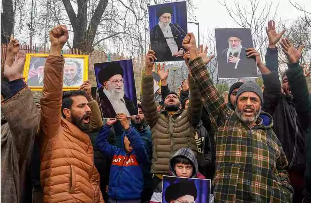శ్రీనగర్ లో ఖమేనికి అనుకూలంగా నినాదాలు చేస్తున్న ముస్లింలు