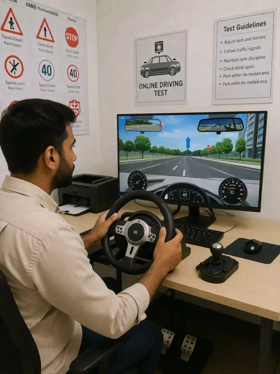 అదేమిటంటే ఆన్ లైన్ రోడ్ సేఫ్టీ టెస్ట్. ఈ ఆన్ లైన్ రోడ్ సేఫ్టీ టెస్టులో ఏముంటుంది అంటే ఆరు మాడ్యూల్స్ ఉంటాయి. ఒక్కోటి 30 నిముషాలుంటుంది. అన్నింటికీ కలిపి మొత్తం 3 గంటలు టెస్టు ఉంటుంది. జనాలకు రోడ్డు భద్రతపైన అవగాహన కలిగించటమే దీని ముఖ్య ఉద్దేశ్యం. ఈ టెస్టుకు అప్పియర్ అయ్యేందుకు అభ్యర్ధులు ఎక్కడికీ వెళ్ళాల్సిన అవసరంలేదు. తమ ఇళ్ళు, ఆపీసులు లేదా డ్రైవింగ్ నేర్చుకున్న స్కూల్ నుండే టెస్టుకు హాజరవచ్చు. కెమెరా సౌకర్యం ఉంటే ల్యాప్ టాప్, డెస్క్ టాప్ మాత్రం కంపల్సరి.