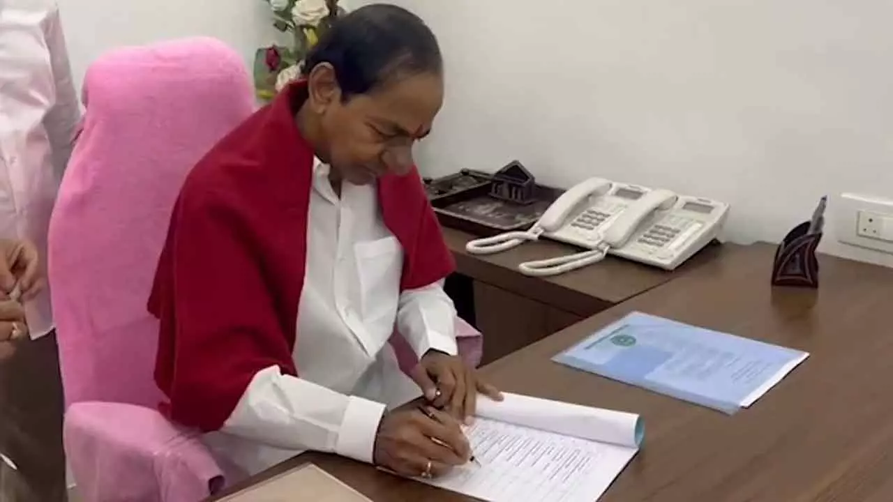 రిజిస్టర్ లో సంతకంచేసిన కేసీఆర్ సభలో తన సీటులో కూర్చున్నారు