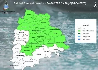 దక్షిణ కోస్తా ఆంధ్రప్రదేశ్, యానాం వాటి పరిసర ప్రాంతాల్లో సగటు సముద్ర మట్టానికి 1.5 నుంచి 3.1 కిలోమీటర్ల ఎత్తులో ఒక ఉపరితల ఆవర్తనం (cyclonic circulation) నెలకొని ఉందని భారత వాతావరణశాఖ హైదరాబాద్ కేంద్రం డైరెక్టర్ డాక్టర్ కె నాగరత్న ‘ఫెడరల్ తెలంగాణ’కు చెప్పారు. మరాఠ్వాడా నుంచి అంతర్గత కర్ణాటక మీదుగా దక్షిణ తమిళనాడు వరకు సగటు సముద్ర మట్టానికి 0.9 కిలోమీటర్ల ఎత్తులో ఒక ద్రోణి విస్తరించి ఉందని ఆమె తెలిపారు. ద్రోషి ప్రభావం వల్ల ఏప్రిల్ 5వతేదీ నుంచి 9వతేదీ వరకు ఐదు రోజుల పాటు తెలంగాణలోని పలు జిల్లాల్లో ఉరుములు, మెరుపులతో తేలికపాటి నుంచి ఓ మోస్తరు వర్షాలు కురిసే అవకాశం ఉందని నాగరత్న వెల్లడించారు. 5రోజుల పాటు రాష్ట్రంలోని పలు జిల్లాల్లో ఐఎండీ అధికారులు ఎల్లోఅలెర్ట్ జారీ చేశారు.