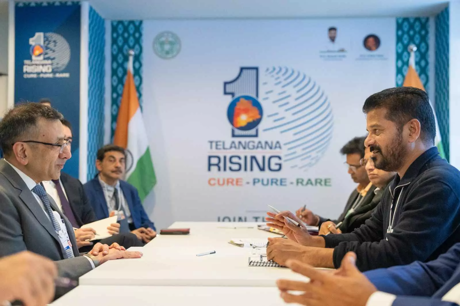 పోయిన నెలలో హైదరాబాద్, ఫ్యూచర్ సిటీలో జరిగిన తెలంగాణ రైజింగ్ 2047 సదస్సులో రాష్ట్రానికి రు. 5.75 లక్షల కోట్ల పెట్టుబడులకు అవగాహన ఒప్పందాలు జరిగిన విషయం తెలిసిందే. ఇపుడు దావోస్ లో కూడా అనేక దిగ్గజ కంపెనీలు తెలంగాణలో పెట్టుబడులు పెట్టడానికి ఒప్పందాలు చేసుకోవటం గమానర్హం. ఎన్నికంపెనీలు ఎన్ని కోట్ల రూపాయల పెట్టుబడులకు ఒప్పందాలు చేసుకున్నాయి అనే విషయాన్ని మాత్రం ప్రభుత్వం తాజాగా ప్రకటించలేదు. అవగాహనా ఒప్పందాలు లక్షల కోట్ల రూపాయలకు జరిగిన మాట నిజమే కాని వాస్తవ పెట్టుబడులు ఎంత వస్తాయన్నది చూడాలి.