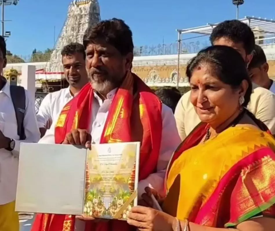 కొడుకు వివాహ ఆహ్వానపత్రికకు శ్రీవారి చెంత పూజలు