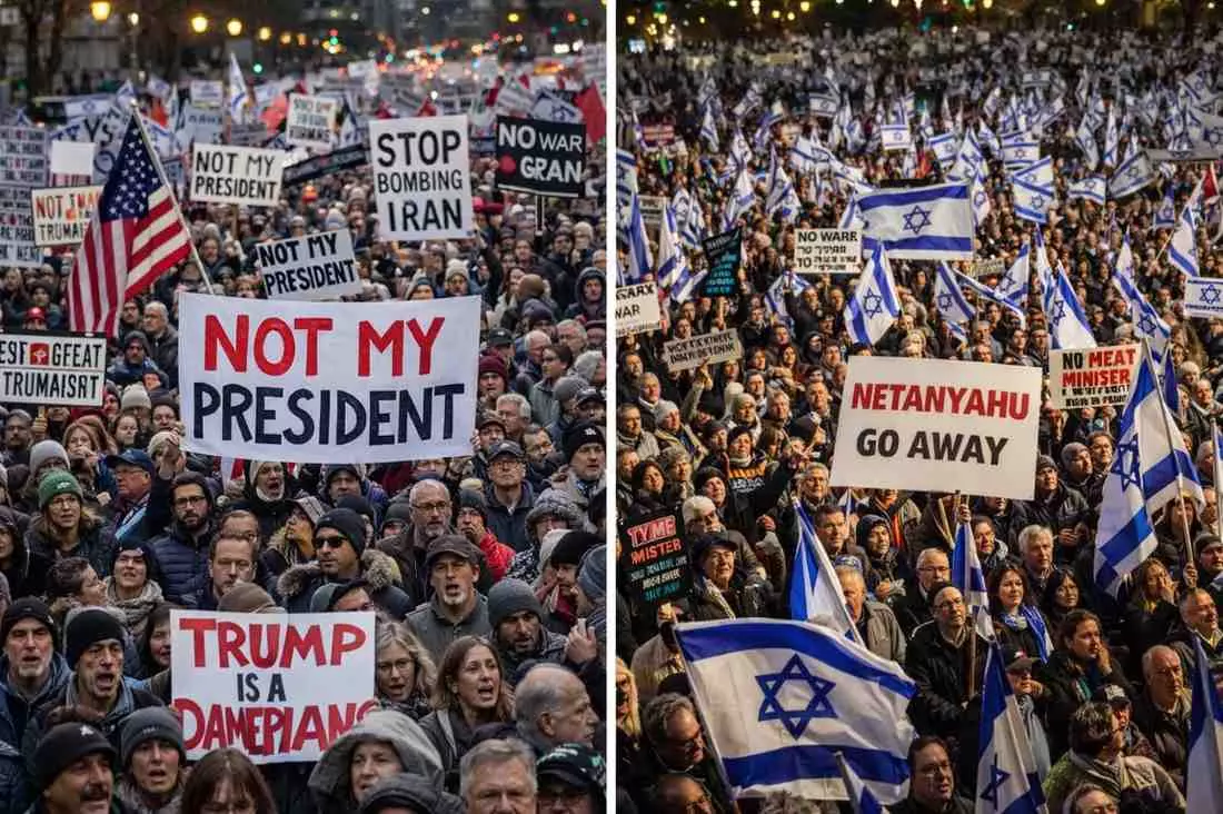 ఇంట గెలిచి రచ్చగెలవాలని పెద్దలు పదేపదే చెబుతుంటారు. అయితే ఈ నానుడి అమెరికా అధ్యక్షుడు డొనాల్డ్ ట్రంప్, ఇజ్రాయెల్ అధినేత నెతన్యాహూలకు వర్తించేట్లు లేదు. ఎందుకంటే వీళ్ళిద్దరు రచ్చగెలవటం సంగతి దేవుడెరుగు ఇంటకూడా వీళ్ళపై తీవ్రస్ధాయిలో వ్యతిరేకత పెరిగిపోతోంది. ఇపుడు విషయం ఏమిటంటే ఇరాన్ పైన అమెరికా, ఇజ్రాయెల్ ఏకపక్షంగా యుద్ధం మొదలుపెట్టి 30 రోజులైంది. ఈ 30 రోజుల్లో అమెరికా అధ్యక్షుడు ట్రంప్, ఇజ్రాయెల్ అధినేత నెతన్యాహూ సాధించింది ఏమిటంటే ఏమీలేదనే చెప్పాలి. యుద్ధంలో ఏమీ సాధించలేకపోగా తమ దేశాల్లో వ్యతిరేకతను మూటగట్టుకుంటున్నారు. అమెరికాలో ట్రంప్కు వ్యతిరేకంగా 50రాష్ట్రాల్లోని 3500 ప్లేసుల్లో సుమారు 90లక్షలమంది భారీనిరసన వ్యక్తంచేశారు. అలాగే ఇజ్రాయెల్లో నెతన్యాహూ వైఖరికి నిరసనగా నిరసనలు మొదలయ్యాయి.