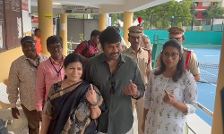 మెగాస్టార్ చిరంజీవి తన భార్య సురేఖతో కలిసి ఓటు హక్కును వినియోగించుకున్నారు. ఓటు వేయడం ప్రతి ఓటరు బాధ్యత అని ఆయన తెలిపారు.